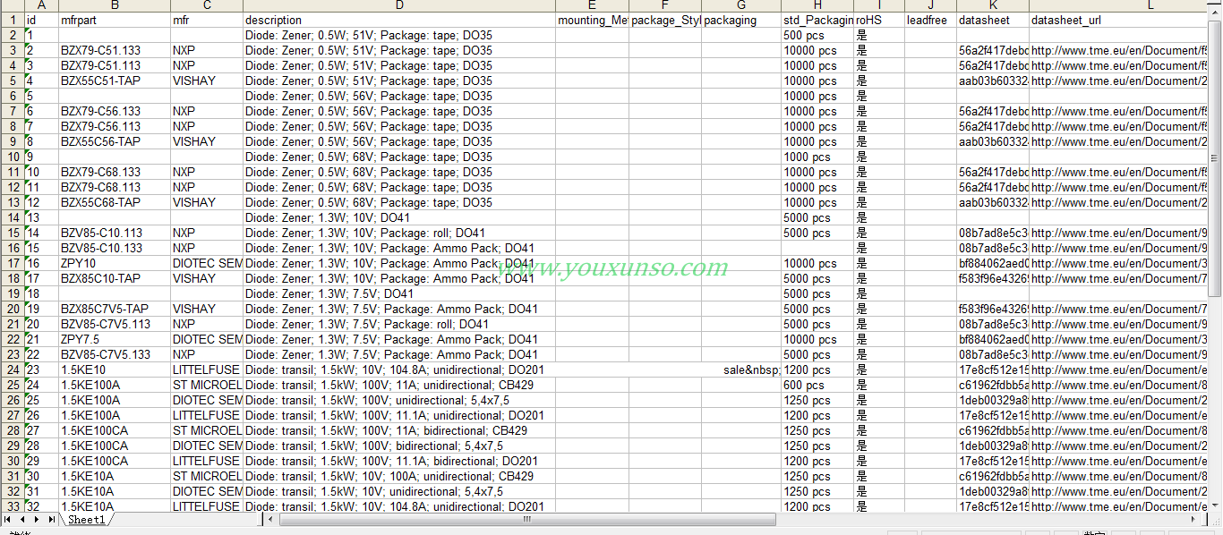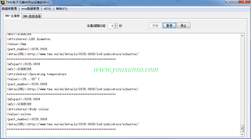 抓取TME网站的电子元器件商品数据,采集数据的主要内容有为:电子元器件产品的类目类型、产品名称、零件编号、制造商零件编号、制造商、描述等各个产品参数,具体以甲方提供的数据格式为准。