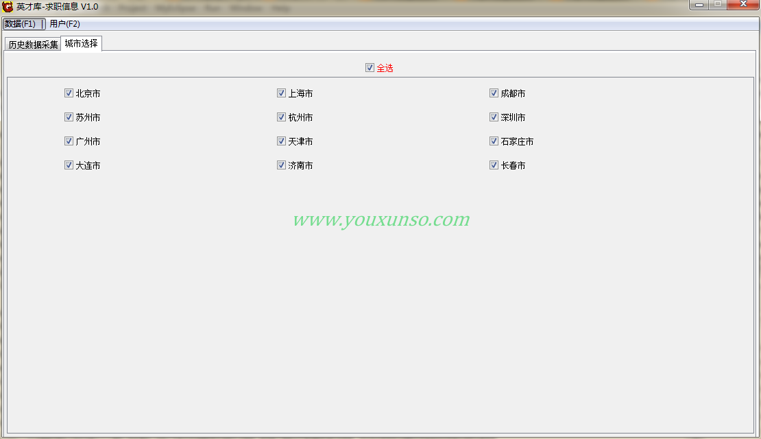 英才库_求职信息采集器的主要功能是:采集“英才库”网站里面的求职信息,包括图片电话号码的下载。采集器采集的主要数据有城市、日期、姓名、性别、年龄、学历、意向工作地、工作经验、期望薪金、我要找、前任职企业、前任职岗位、电话图片、电话文字。采集到的数据自动保存数据库,并且可以导出excel表格。